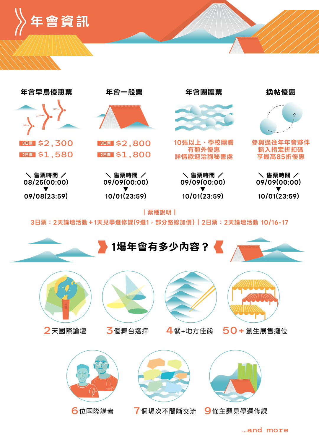 ※於創生年會舉辦時間前第三日(10/12)至第十日(10/5)內請求退票者,退票金額將扣除票面金額50%手續費用。